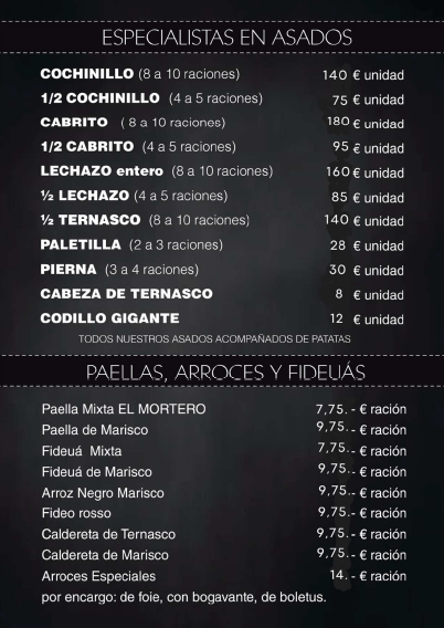 Paellas y fideuás, mixtas y de marisco. Arroz negro, rosso. Calderetas de marisco o ternasco. Riquísimos. Pruébelos.